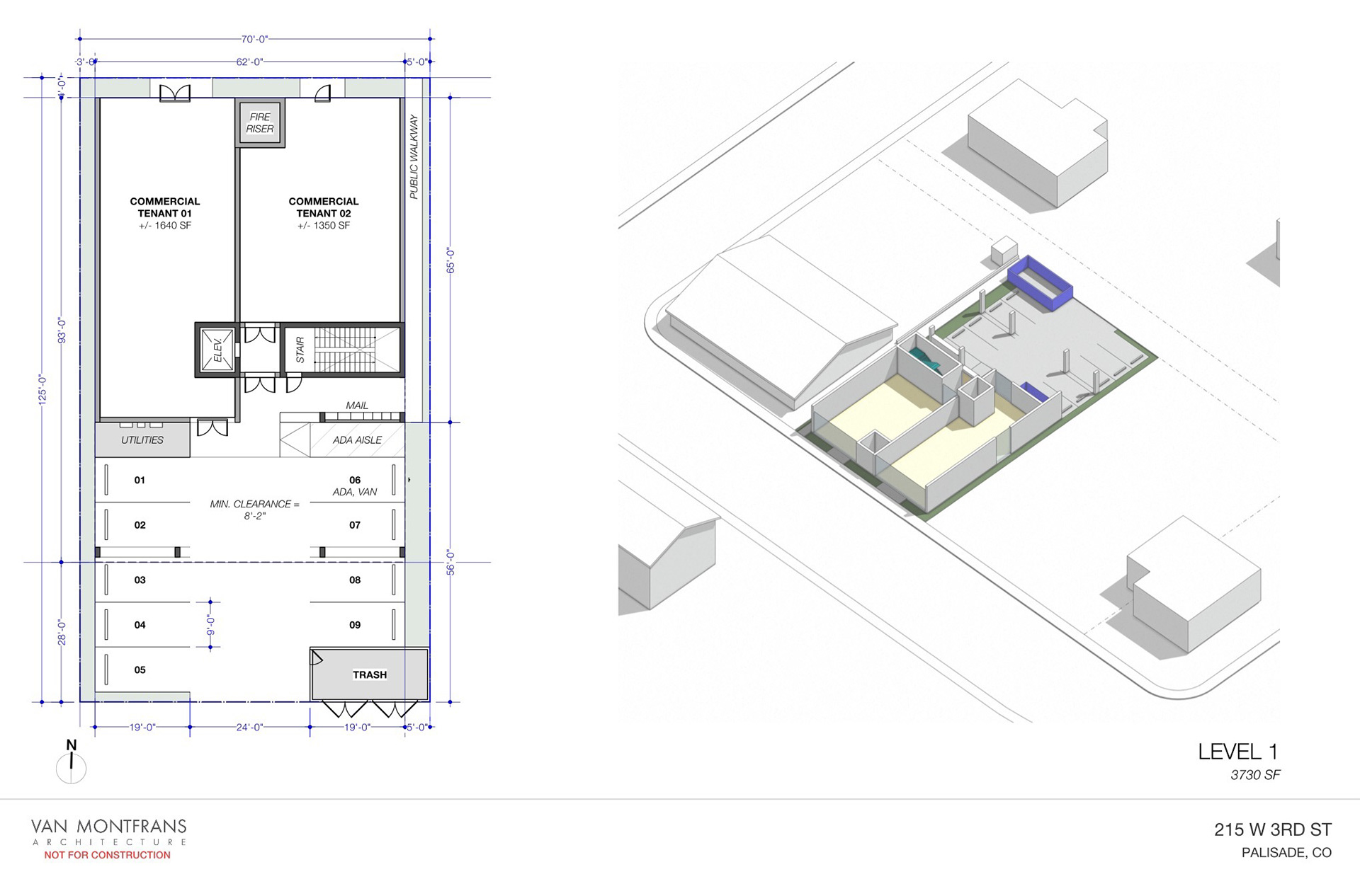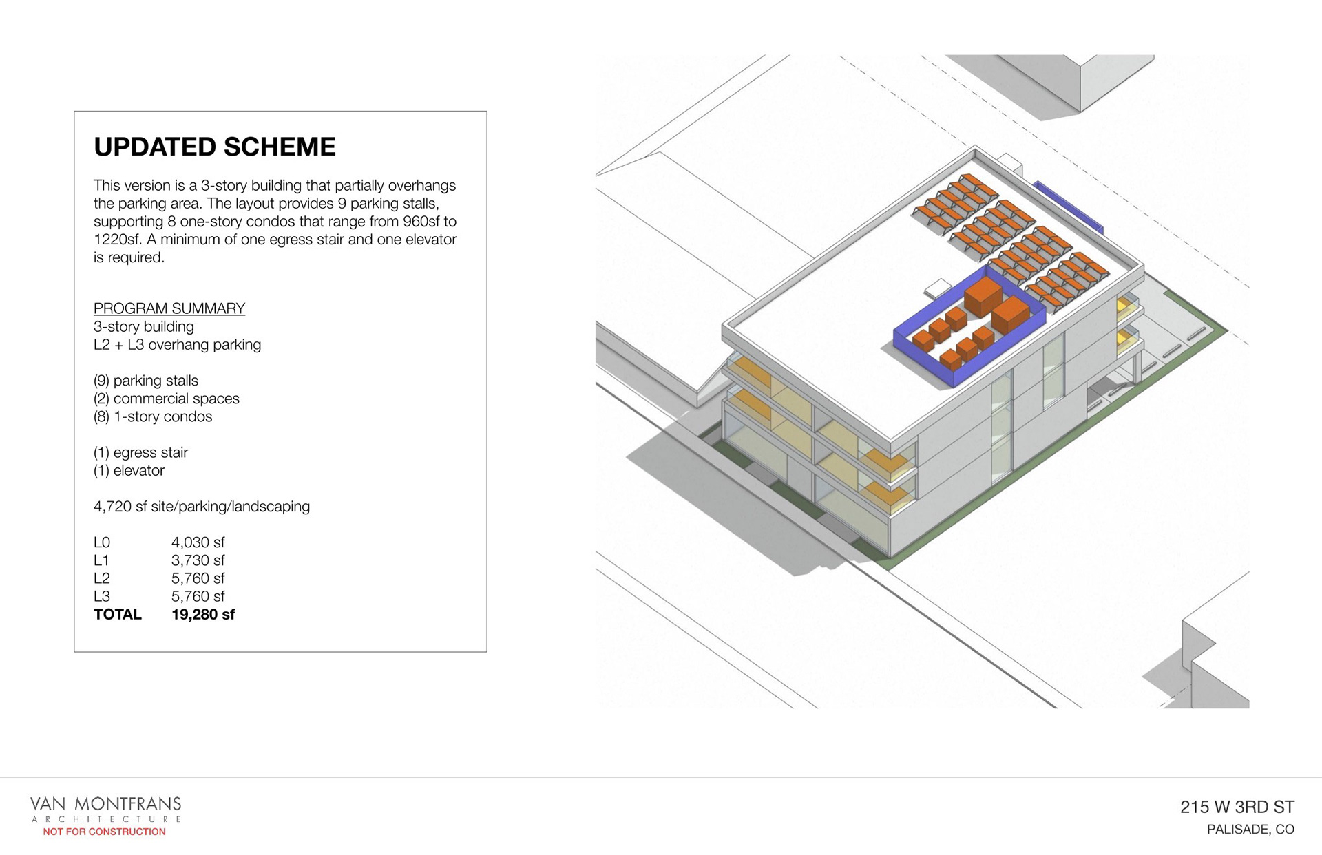 This project evaluated the development potential of a constrained infill site in downtown Palisade, exploring a mixed-use residential and commercial building within zoning, parking, and access limitations.